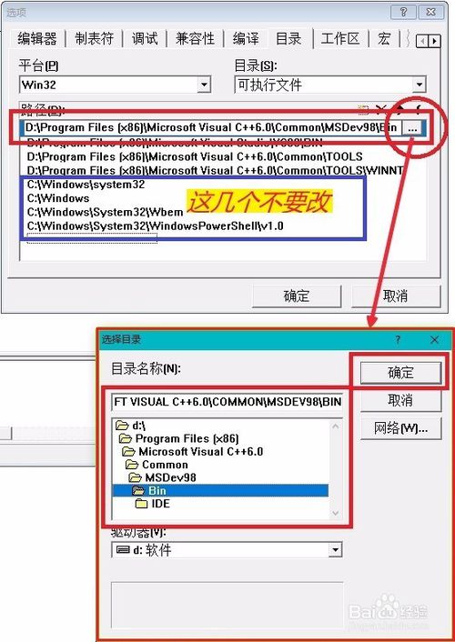 有些同學(xué)可能會(huì)找不到某文件夾,最簡(jiǎn)單的方法:如下圖直接雙擊VC6根目錄文件夾,重新定位目錄即可。