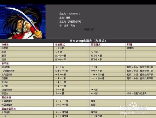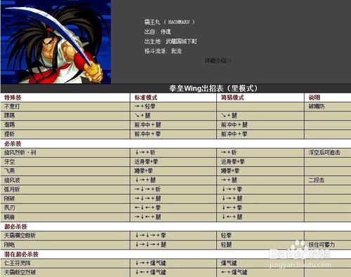 拳皇wing1.91霸王丸表里模式出招表