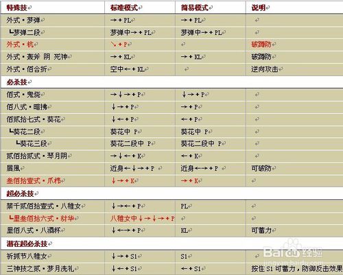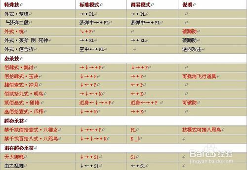拳皇wing1.91春麗表里模式出招表