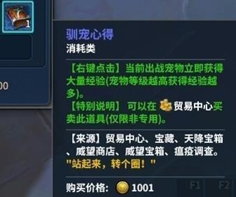 從金幣商會購買的訓寵心得可以快速提升寵物等級,不過需要花費一定量的金幣。如果急于為寵物提升等級且金幣代價可以承受的話,可以使用此方法。