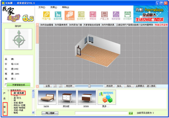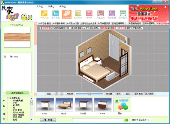step3:將家具放置相應(yīng)位置,鼠標(biāo)左鍵確定(在確定前也可通過空格鍵來調(diào)整家具方向)