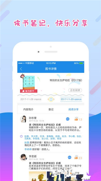 閱讀分享:一邊閱讀一邊分享,一邊互動一邊學習,增加班級同學、師生之間的閱讀交流,從而發(fā)現(xiàn)更多閱讀興趣。