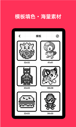 【像素畫手繪畫板】交互體驗(yàn)流暢,輕松在手機(jī)端繪制像素畫。【海量模板,每日更新】提供海量黑白模板,填色創(chuàng)作趣味無限。