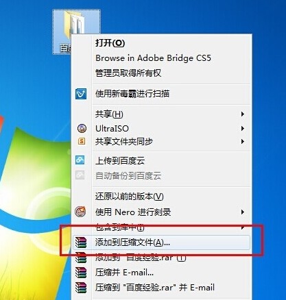 1、選中百度經(jīng)驗文件夾,右鍵彈出快捷菜單,選擇“添加的壓縮文件”。