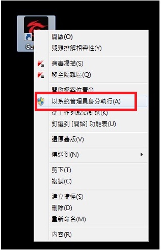 5.於桌面上對(duì)著Garena電腦板點(diǎn)選滑鼠右鍵 → 以【系統(tǒng)管理員】身分執(zhí)行。