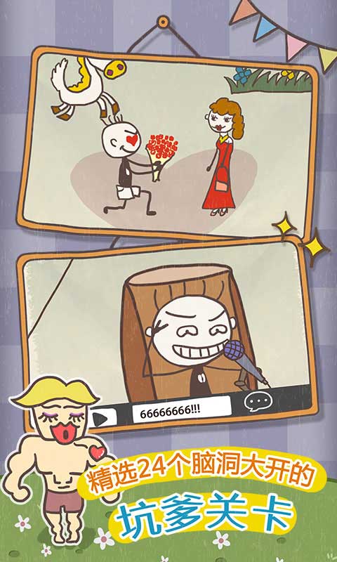 1000+個(gè)來自坑爹游戲玩家的奇思妙想,上百種坑爹玩法,最終精挑細(xì)選的24關(guān)玩家創(chuàng)意,沒有最坑,只有更坑!