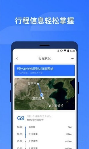 【實時數(shù)據(jù)】實時同步12306余票、價格、時刻表。【行程服務(wù)】出發(fā)提醒,退改簽提醒,到站提醒,關(guān)注行程,不誤車不誤站。