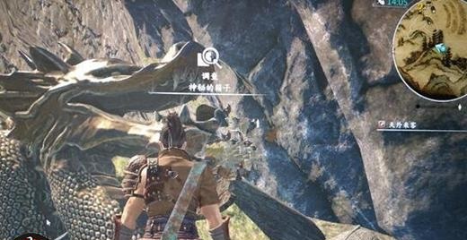 第一塊初始洞穴瀑布旁邊上方,第二塊土豪死后,出洞位置右邊懸崖采完礦石下方龍頭的上方突出部位。