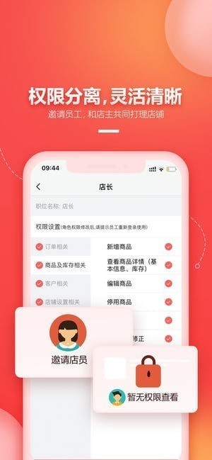 邀請店員,和店主共同打理店鋪。權限分離、靈活控制;