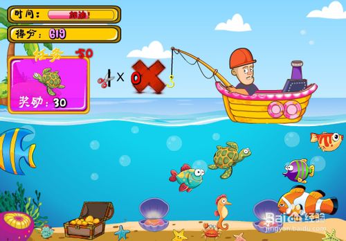 3、水下會有各種魚游過,根據(jù)目標任務(wù),必須要找到目標魚才放下鉤子釣上來才可以得分的哦,否則就要減分。