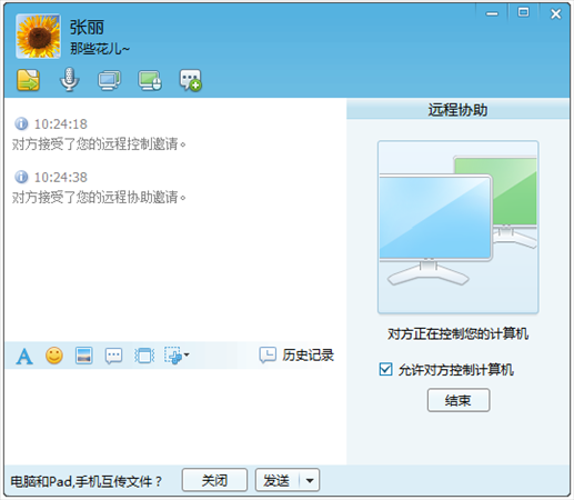 遠程控制,申請控制對方的計算機,對方接受請求后,可以查看對方計算機桌面并進行控制。