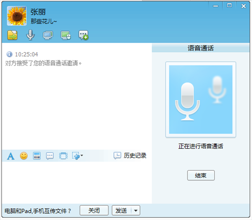 語音通話,在進行語音通話前,請連接并設(shè)置好計算機的麥克和聲音播放設(shè)備。