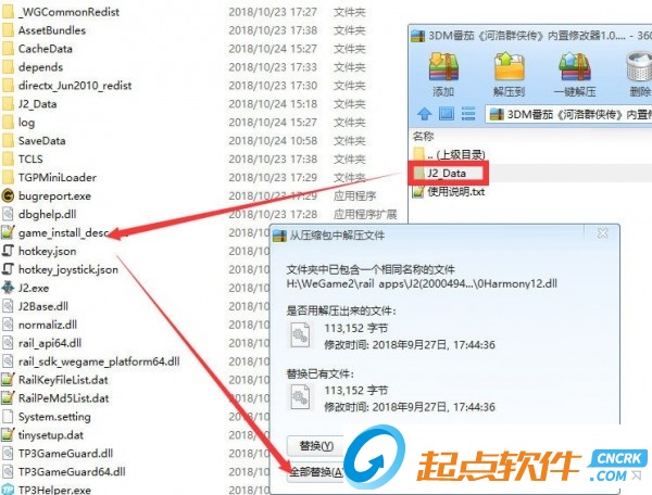 2.打開壓縮包 拖拽壓縮包內(nèi)的 J2_Data 文件夾到游戲根目錄 全部替換 搞定