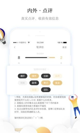 在“幕外”,用戶可以通過關注、評價產(chǎn)品,獲取自己獨特的“內(nèi)外屬性”。通過完善的社交功能,發(fā)現(xiàn)理念相近的伙伴,輕松探討興趣所在!