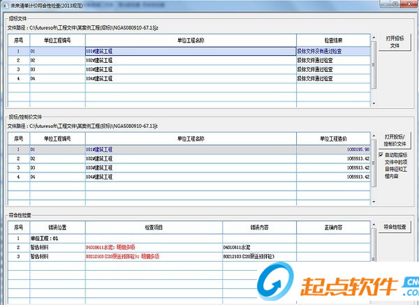 導(dǎo)出前檢查:軟件提供招/投標(biāo)文件導(dǎo)出前檢查功能,檢查項(xiàng)目和錯(cuò)誤提示一目了然,可根據(jù)錯(cuò)誤快速修改,避免反復(fù)導(dǎo)出檢查。