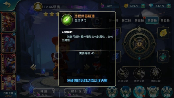 每個英雄都有自己的裝備專精,在20級天賦突破三階后自動激活,就算沒有20級,也可以在英雄界面查看,增加100%的主屬性哦~