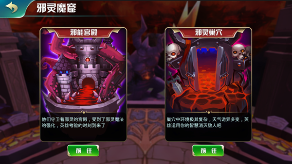 另一邊的邪靈巢穴又是另一番光景,巢穴每周都會形成一種特殊的環(huán)境,進入魔宮試煉的英雄每周都會在不同的環(huán)境下進行戰(zhàn)斗,比如英雄每次行動失去10%生命,或者所有英雄攻速增加50000點,所有英雄技能觸發(fā)率提高50%等等。所有的增益buff對英雄有利,不過有的英雄的加成更給力,主要的變故就在于減益buff,相當致命。