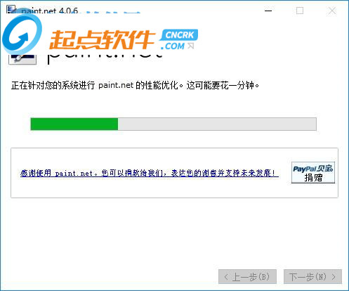 4、正在優(yōu)化paint.net的性能,這個過程可能會需要一分鐘,請稍后