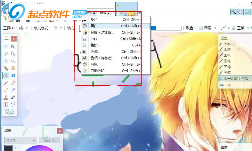 6、調(diào)色功能:反色、黑白色、亮度對比度、曲線、色階、色調(diào)、色相飽和度、自動色階