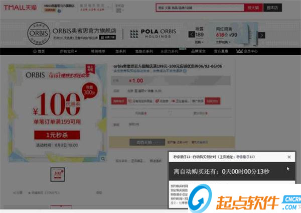 秒殺助手運(yùn)行后,taobao、tmall頁面左上角會(huì)出現(xiàn)計(jì)時(shí)器: