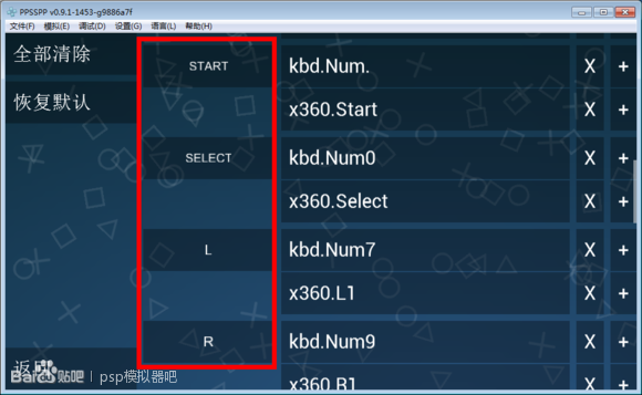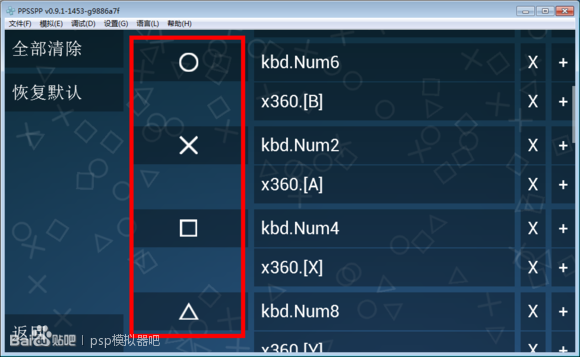 紅框里面的就是psp按鍵一般來說 psp游戲只要把上面所有鍵位都設(shè)置好了游戲的操作就沒有問題了