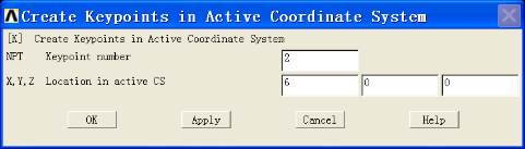 a. Main Menu: Preprocessor > Modeling > Create > Keypoints > In Active CS...