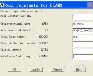 c. 選擇 OK 定義BEAM3的實常數(shù).