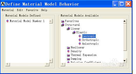 b. 選擇右欄各向同性線彈性材料: