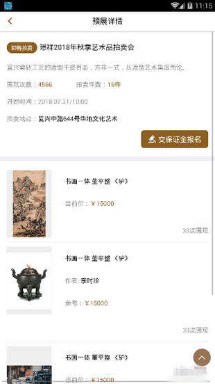 [功能強(qiáng)大便捷]:方便快速地查看拍賣預(yù)展信息,多維度搜索,設(shè)置成交價(jià)提醒,一鍵導(dǎo)航至拍場(chǎng)。
