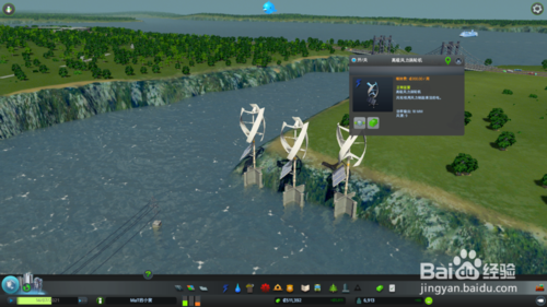 3.初始要先建造 電力系統(tǒng):前期建立風(fēng)力發(fā)電站即可,不僅夠用還是清潔能源沒(méi)有污染(要建立在風(fēng)力顯示為深藍(lán)色的地方,這樣電力大),稍微發(fā)展一點(diǎn)后可以建立水利發(fā)電機(jī),在水中尋找發(fā)電量大的位置,一般比風(fēng)力的還高一些。