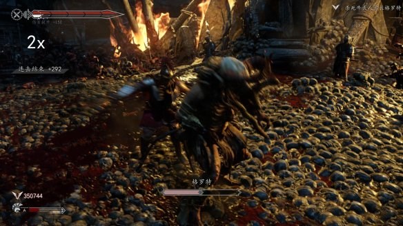 第二階段是當(dāng)牛頭人半血的時(shí)候,會(huì)發(fā)生劇情,直接滿血,然后會(huì)施展沖鋒,不要慌也不要按鍵,每次沖鋒靠近我們的時(shí)候會(huì)出現(xiàn)QTE,順著按就會(huì)利用盾牌將牛頭人翻到身后去!