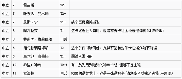 T1/T1+:在主流套路中有一席之地的優(yōu)秀金卡。