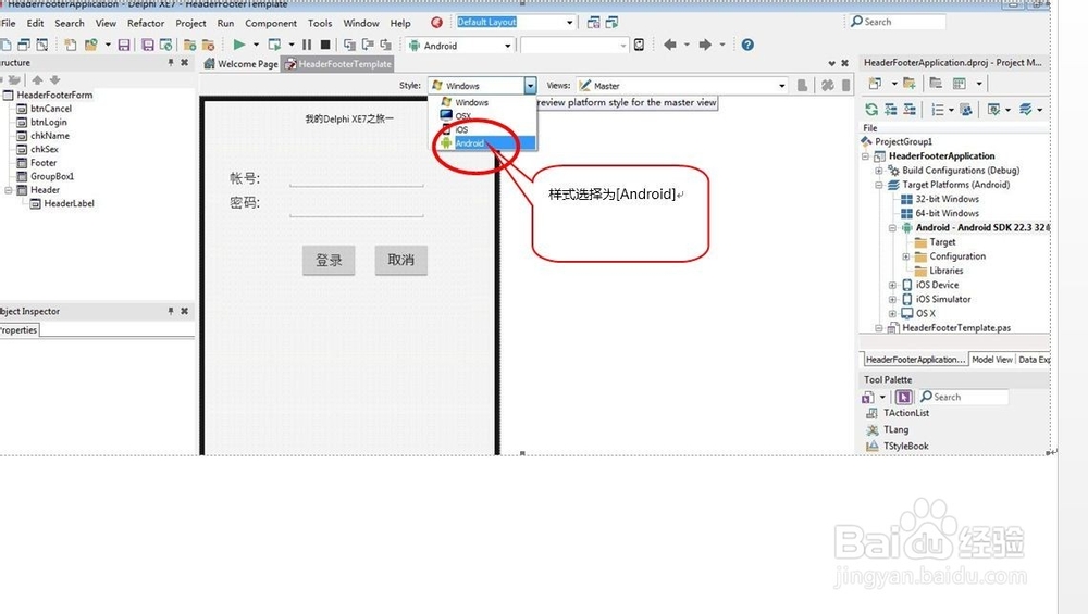 第六步,我們把設(shè)計的圖形界觀的樣式選擇為[Android]模式,這樣比較直觀。