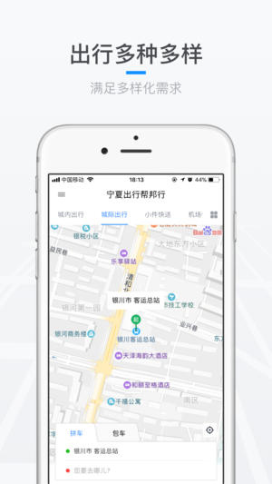 專業(yè)市內(nèi)網(wǎng)約車、網(wǎng)約合乘包車、網(wǎng)約速遞平臺(tái),為出行者提供便捷、靈活、優(yōu)惠、安全的接送服務(wù)。寧夏出行幫邦行致力于打造安全、便捷的網(wǎng)約車平臺(tái),提供多種出行方式,為用戶提供機(jī)場(chǎng)拼車、城際出行和跨城閃送等產(chǎn)品,滿足多樣化需求,服務(wù)優(yōu)質(zhì),重新定義您的出行。