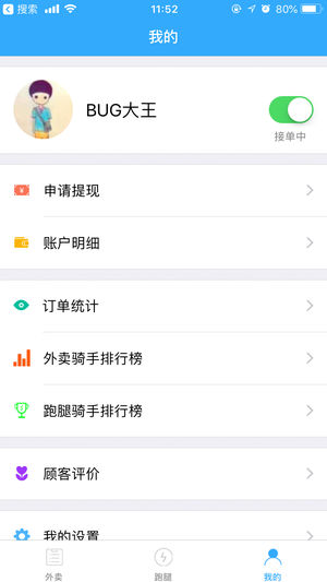 4.在訂單配送完成后,配送員會得到相應(yīng)的配送費(fèi),該配送費(fèi)自動打入配送員賬戶余額。