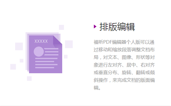 福昕PDF編輯器可以通過移動和縮放段落調(diào)整文檔布局,對文本、圖像、形狀等對象進(jìn)行左對齊、居中、右對齊或垂直分布、旋轉(zhuǎn)、翻轉(zhuǎn)或傾斜操作,來完成文檔的版面編輯。