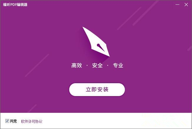 2、這時候,我們就進(jìn)入了Foxit PDF編輯器的安裝向?qū)?。安裝向?qū)е鹘缑娣浅:啙?,安裝程序默認(rèn)用戶同意了許可協(xié)議,只需點擊[立即安裝],就可以將Foxit PDF編輯器安裝到電腦里面;