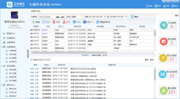 1、錄入車輛檔案后便可在車輛工作臺(tái)中記錄車輛各種臺(tái)賬及車輛的出車/收車登記,以及查看用車統(tǒng)計(jì)、費(fèi)用統(tǒng)計(jì)和GPS里程統(tǒng)計(jì)。2、滿足企業(yè)只需用車登記方式就能管理車輛,簡(jiǎn)潔、高效。實(shí)現(xiàn)企業(yè)移動(dòng)管理車輛,提升車輛管理效率。