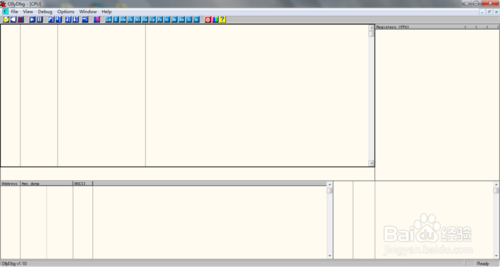 1、啟動(dòng)您可以采用命令行的形式指定可執(zhí)行文件、也可以從菜單中選擇,或直接拖放到OllyDbg中,或者重新啟動(dòng)上一個(gè)被調(diào)試程序,或是掛接[Attach]一個(gè)正在運(yùn)行的程序。OllyDbg支持即時(shí)調(diào)試,根本不需要安裝,可直接在軟盤(pán)中運(yùn)行!
