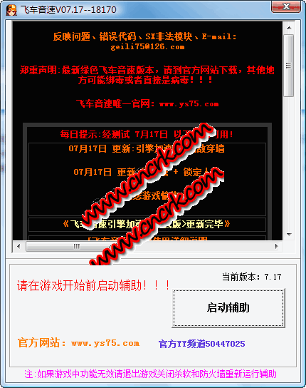 飛車音速加速輔助幫助你更好的體驗QQ飛車的樂趣,使用時先打開工具,選擇游戲所在目錄,然后再登陸QQ飛車,開啟輔助工具即可,該工具可以穿透防火墻,所以無需關(guān)閉,適合網(wǎng)吧使用。
