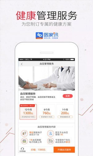 醫(yī)家訊app是一款健康智能管理軟件,醫(yī)家訊app承載了眾多的服務(wù)內(nèi)容:比如健康檢測、健康管理、運動記錄、緊急警報等。醫(yī)家訊app擁有智能手環(huán)、智能血壓計、智能血糖儀等多種輔助智能檢測設(shè)備體系。醫(yī)家訊app擁有強大的報表統(tǒng)計功能,多方面的身體數(shù)據(jù)資源整合,可為監(jiān)測服務(wù)的應(yīng)用提供有力的數(shù)據(jù)依據(jù)。