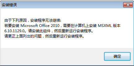 Office2010安裝需要MSXML版本6.10.1129.0教程新裝的系統(tǒng),雙擊打開office 2010安裝文件,就會(huì)提示缺少M(fèi)SXML組件,安裝程序無法進(jìn)行,下面就來介紹下另一種解決方法