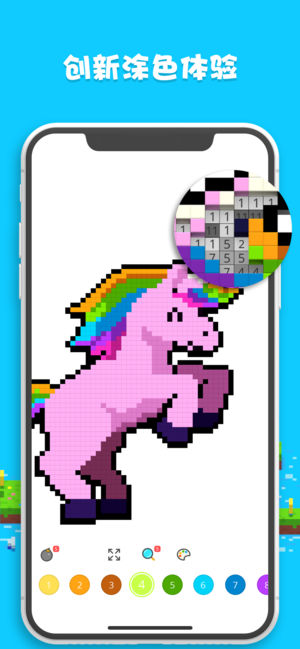 在寫著數(shù)字的像素格子中填入對應(yīng)數(shù)字的顏色,就能完成一幅超棒的彩色像素畫!