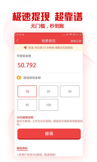 超速度,微信提現(xiàn)秒到賬。人人能賺到,手到錢就來(lái)。