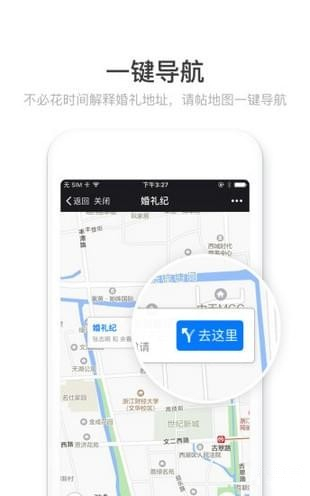 6.一鍵導(dǎo)航:不用花時(shí)間解釋婚禮地址,電子地圖一鍵導(dǎo)航路線(xiàn)。