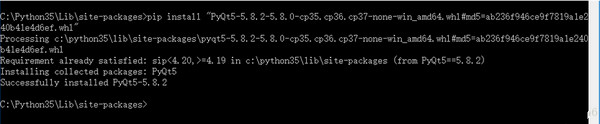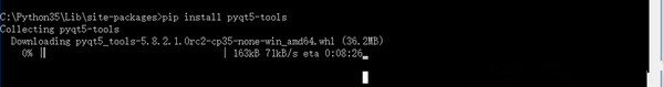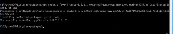 得到文件名稱pyqt5_tools-5.8.2.1.0rc2-cp35-none-win_amd64.whl, 百度下載,鏈接 https://pypi.python.org/pypi/pyqt5-tools, 下載后直接安裝, 命令 :pip install XXX.whl, 如下圖: