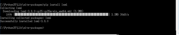 由于lxml文件很小,一般可以安裝成功,不行的話,同上述方法,下載whl文件再pip安裝。