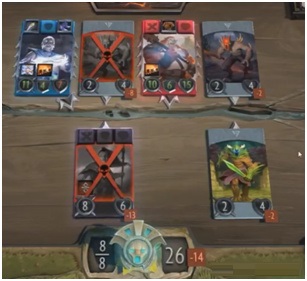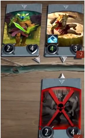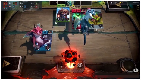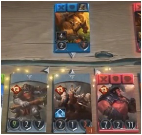 Artifact的戰(zhàn)斗機制和爐石類似。相互戰(zhàn)斗的單位,會受到敵方攻擊力數(shù)值的傷害,如果這個傷害高于單位目前的血量,則該單位被消滅。在戰(zhàn)斗之前,玩家可以清楚看到此次戰(zhàn)斗的結(jié)果。