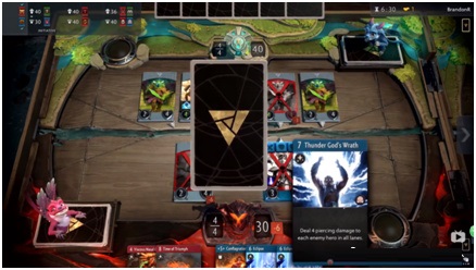 Artifact與其他卡牌的最大區(qū)別,就是玩家將在一場比賽中同時指揮3路對戰(zhàn)。制作人的意圖,是希望玩家能在一局比賽中,體驗到3局2勝的公平戰(zhàn)斗。