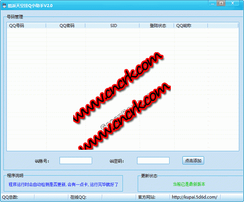 酷派天空掛q小助手是一款批量掛qq工具,防止qq號碼長時(shí)間不上被騰訊回收。